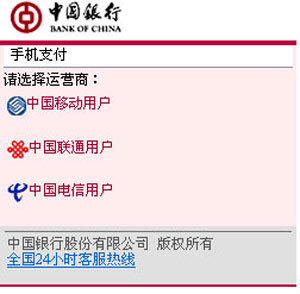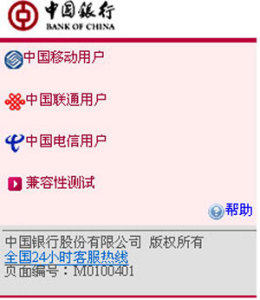 開(kāi)通手機(jī)銀行(理財(cái)版或貴賓版)后,請(qǐng)通過(guò)手機(jī)登錄中國(guó)銀行手機(jī)銀行地址“mbs.boc.cn”(圖1),進(jìn)入選擇運(yùn)營(yíng)商頁(yè)面。