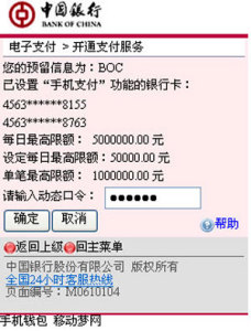在您使用中行手機(jī)支付前,您需要先開(kāi)通手機(jī)銀行理財(cái)版或貴賓版。手機(jī)銀行開(kāi)通時(shí)需使用一張長(zhǎng)城電子借記卡,您可選擇已有的借記卡來(lái)開(kāi)通手機(jī)銀行,也可選擇到柜臺(tái)申請(qǐng)新的借記卡并開(kāi)通手機(jī)銀行。