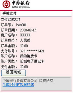 您在我行手機(jī)商城或手機(jī)購(gòu)物網(wǎng)站選定商品,請(qǐng)選擇中行手機(jī)支付。